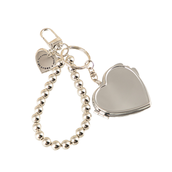 LLavero de espejo compacto en forma de corazón con cadena de bolas de metal, espejo de maquillaje plegable portátil para niñas, artículo de regalo creativo